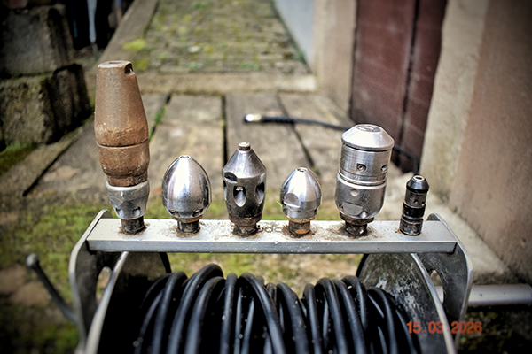 - Die richtige Waffe: Fettablagerungen? Wurzeln? Kalk? Wir wechseln einfach die Düse! Von Rotationsdüsen bis hin zu Granat-Spezialköpfen haben wir für jedes Hindernis das richtige Werkzeug.